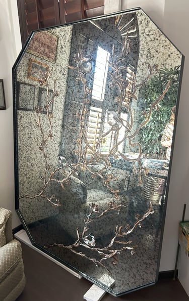 Espejos únicos y a la medida de nuestros clientes. Contamos con espejo plata, bronce, humo y manchado. al igual que marcos de acero y madera.